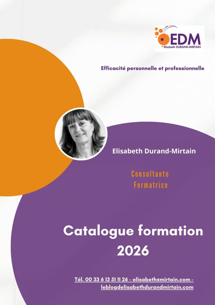 Mes formations portent sur l’efficacité professionnelle et personnelle. Mon offre se décline autour des domaines suivants : management, communication, organisation et développement personnel. Chacun de ces domaines est détaillé dans les programmes à télécharger.